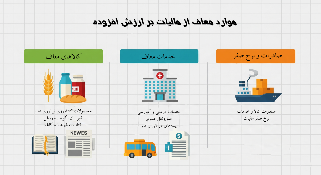 حمایت از صادرات: کالاها و خدمات صادراتی معمولاً با نرخ صفر مشمول مالیات بر ارزش افزوده هستند، به این معنی که صادرکنندگان میتوانند مالیات پرداختی خود را بازپس گیرند. این امر به تشویق صادرات و افزایش رقابتپذیری در بازارهای جهانی کمک میکند.