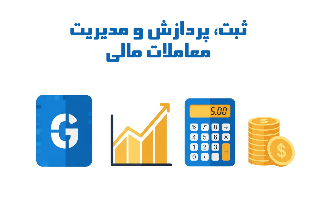 ثبت و مدیریت معاملات مالی: امکان ثبت سریع فاکتورها، پرداختها و دریافتیها. مدیریت حسابهای بانکی و پیگیری بدهیها آسان میشود.